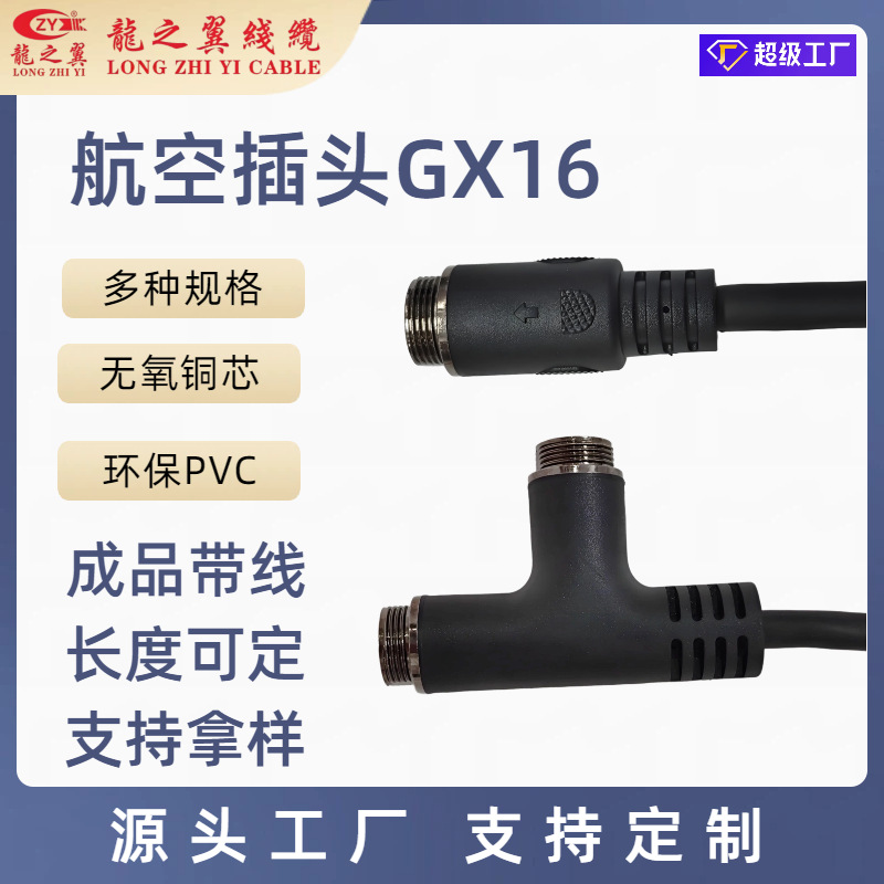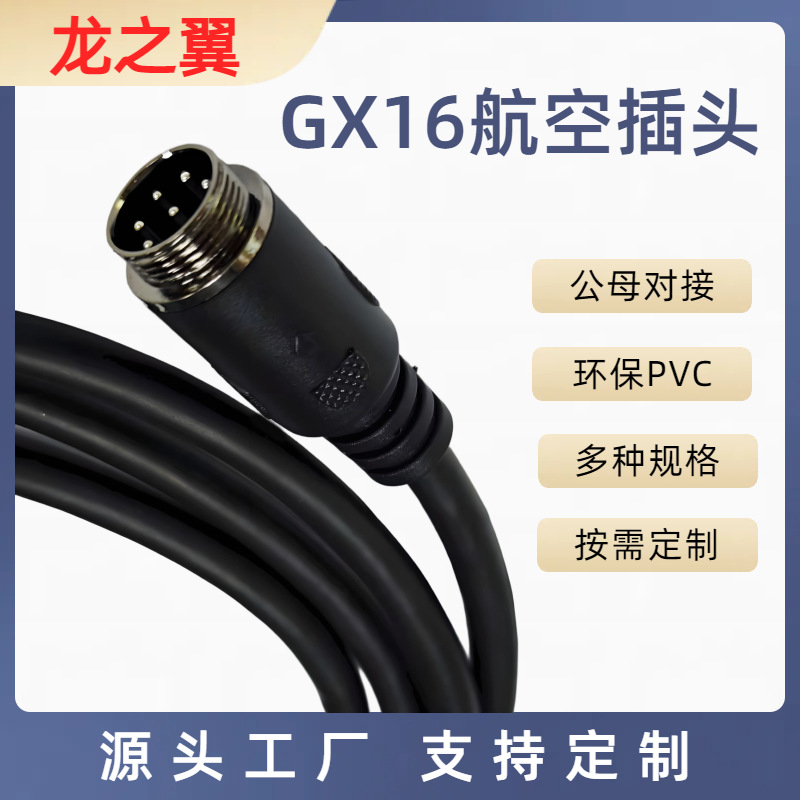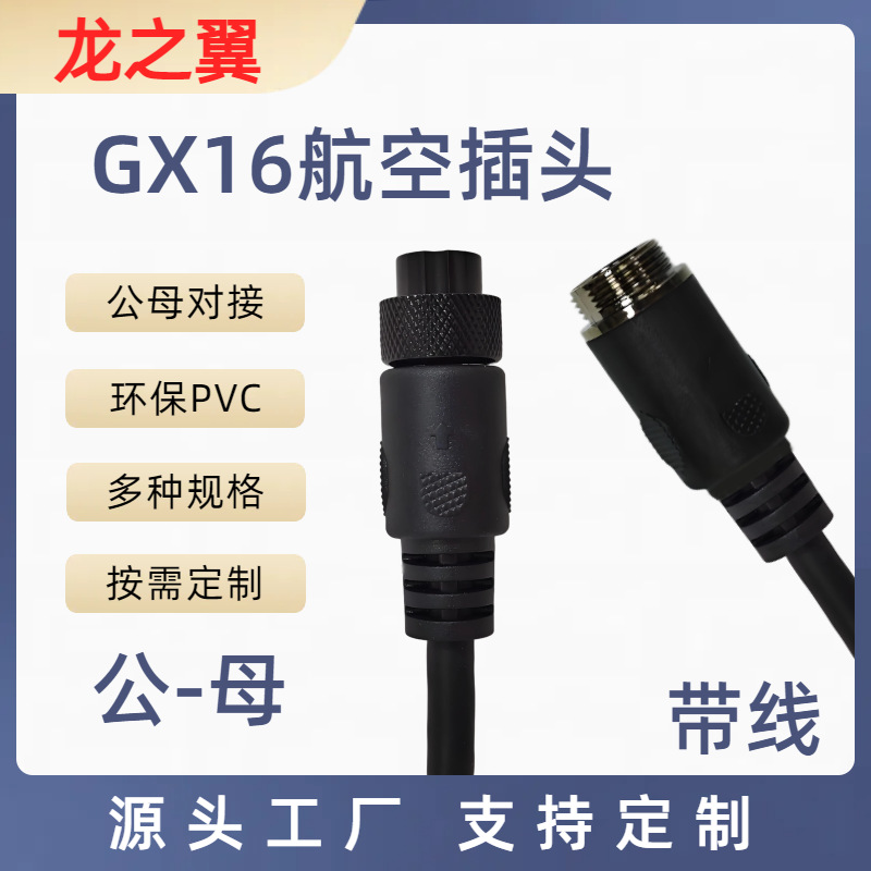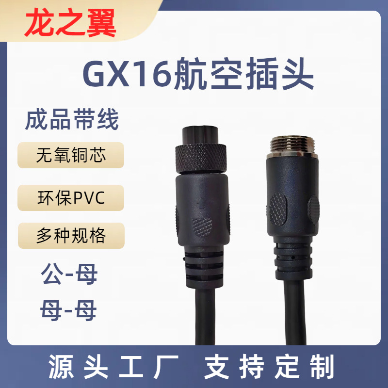 龙之翼航空插头系列GX16带线公母头对接8芯防水抗干扰连接线