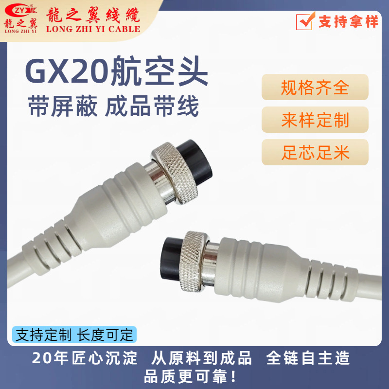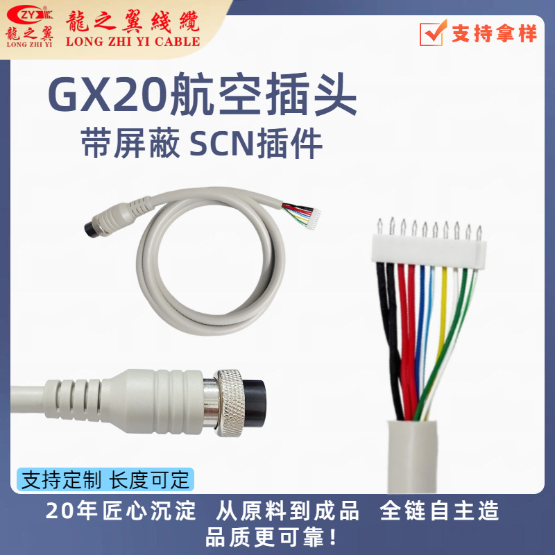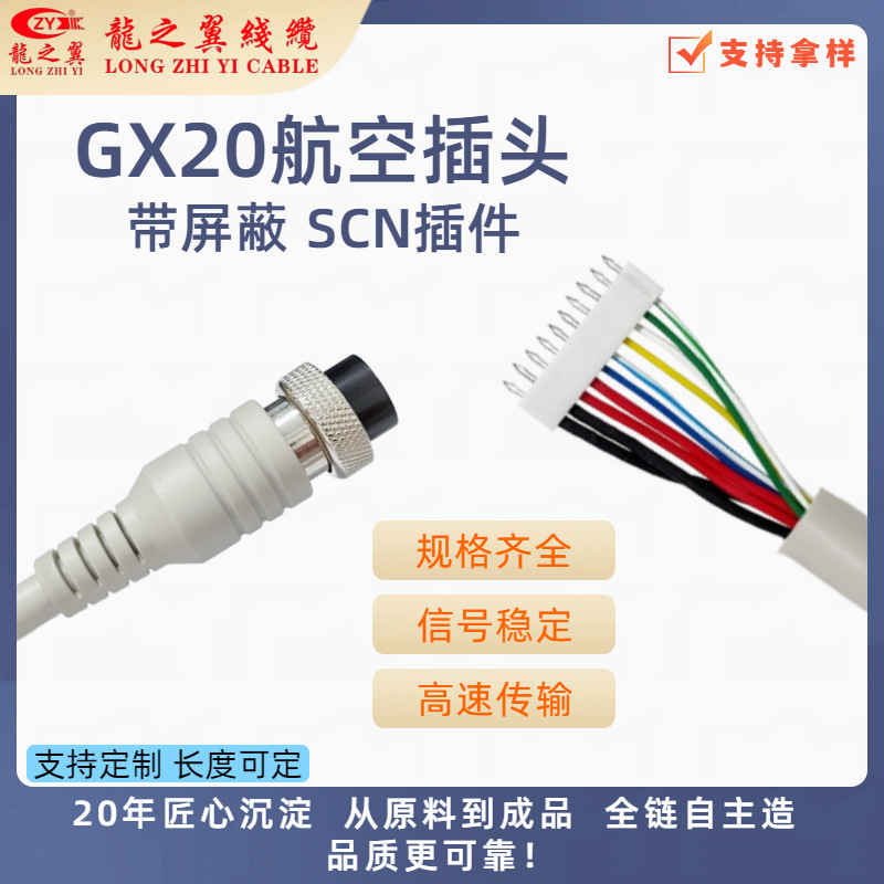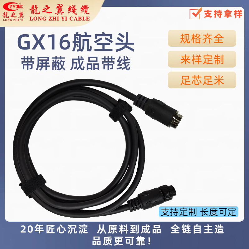 龙之翼GX16航空插头公转端子带屏蔽线缆带线8芯车载监控连接器