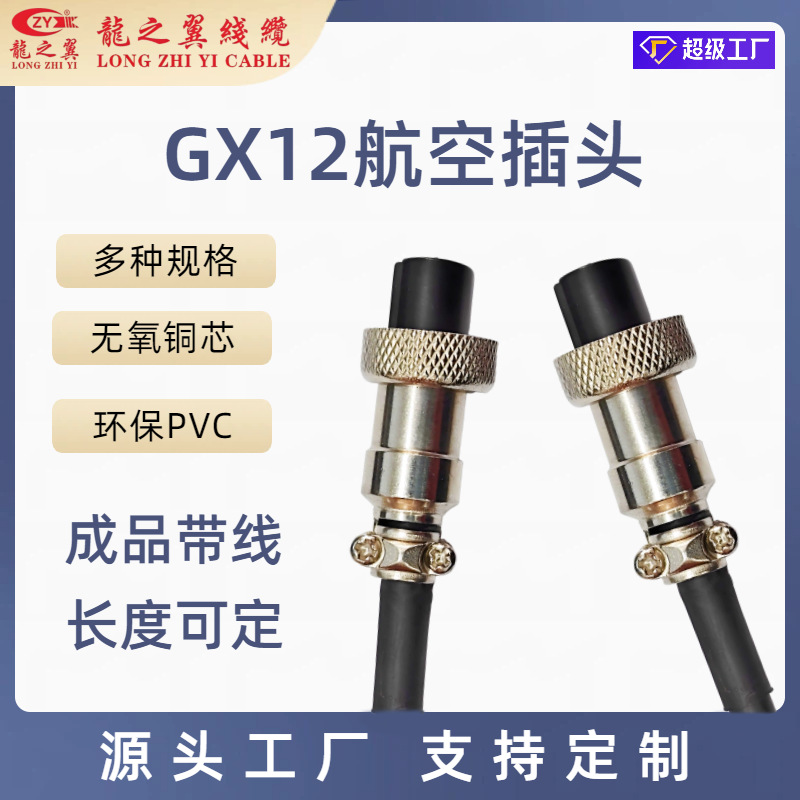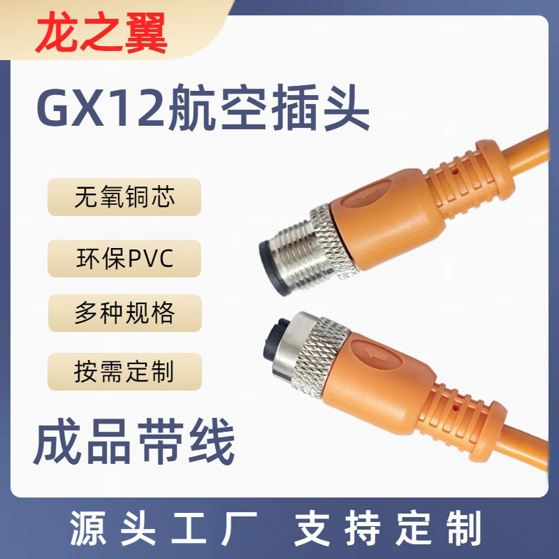 源头工厂 4芯GX12航空插头公母对接插座连接器PVC线缆插拔式