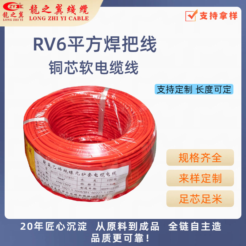 RV6平方多股铜芯软电缆红色耐磨焊把线电焊机/激光设备专用连接线