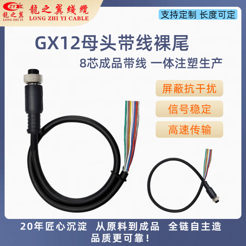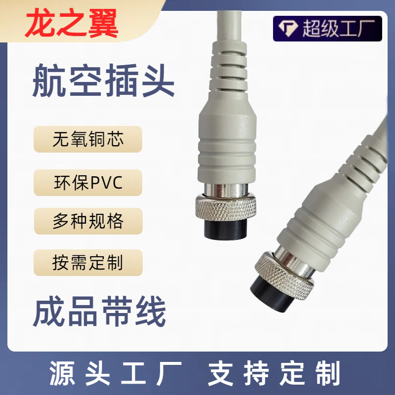 龙之翼GX16系列航空插头带线公母头8芯防水抗干扰车载监控连接线