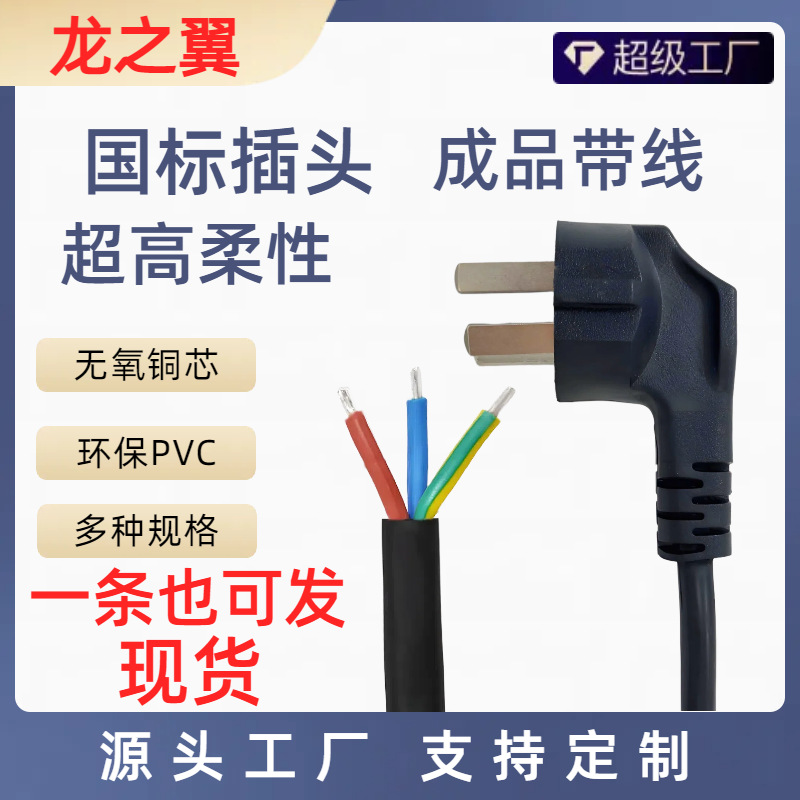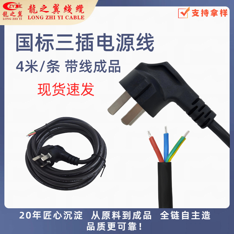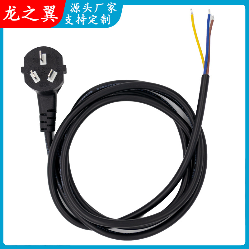 现货3C认证国标三插电源线裸尾插头0.75平方3芯纯无氧铜电源线