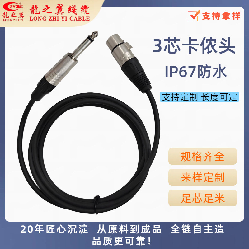 龙之翼3芯卡侬头音视频转换线麦克风话筒音频信号带线插头延长线