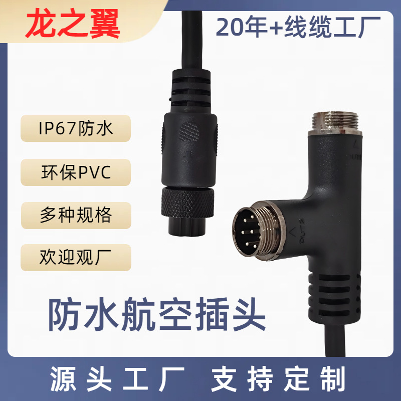 M8电缆4孔铜件直头航空插头带线5米耐机油耐酸碱阻燃ce龙之翼