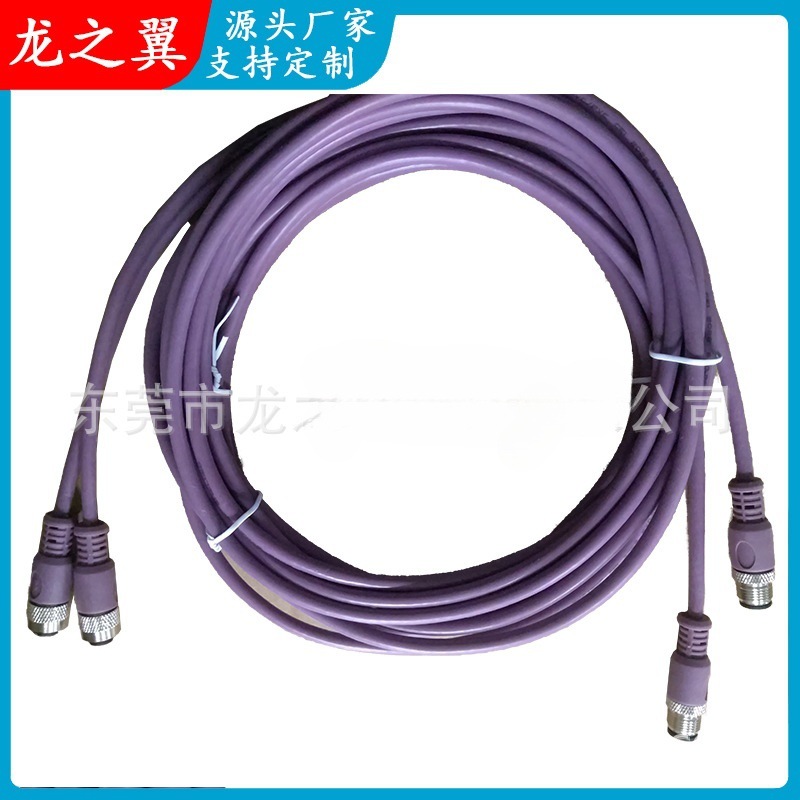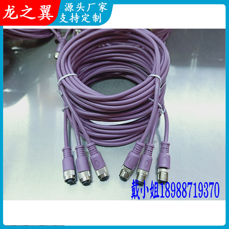 M12 4针4孔0.34平方紫色耐酸碱抗油电缆公母直头带线2米连接器