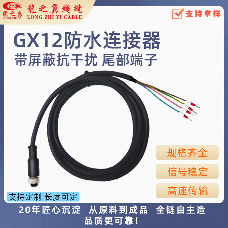 GX12端子插头gx12航空插头4芯公头带线防水屏蔽工业传感器连接线