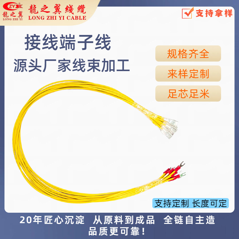 龙之翼黄色接线端子线带叉形冷压端子电子连接线源头厂家线束加工