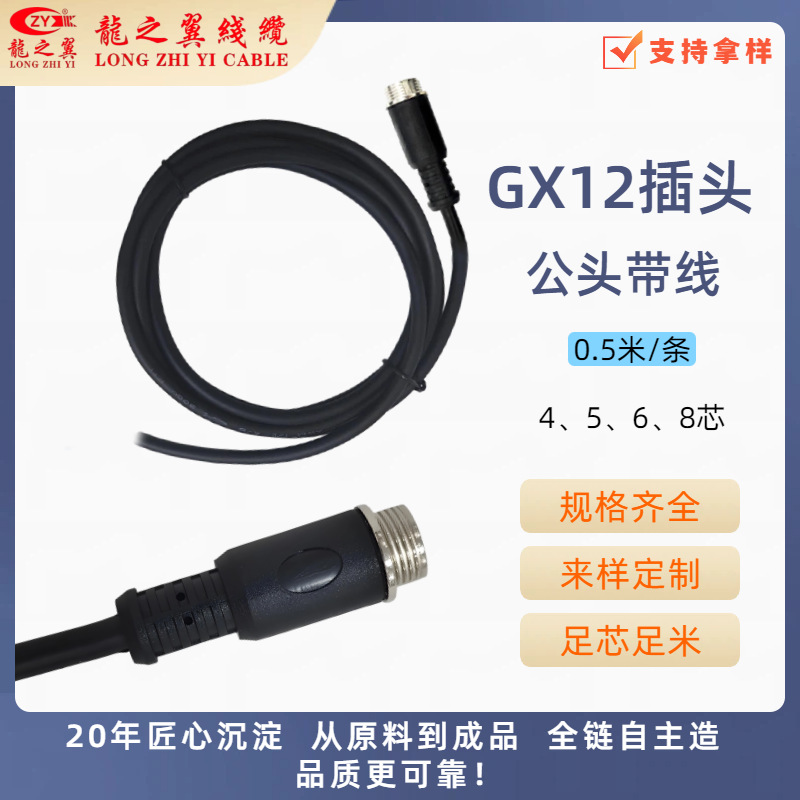 龙之翼GX12航空插头4芯带线舞台灯光功放话筒自动化设备公母插座