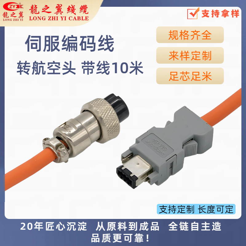 伺服电机线控制线编码线线带线3米橙色高柔拖链线束