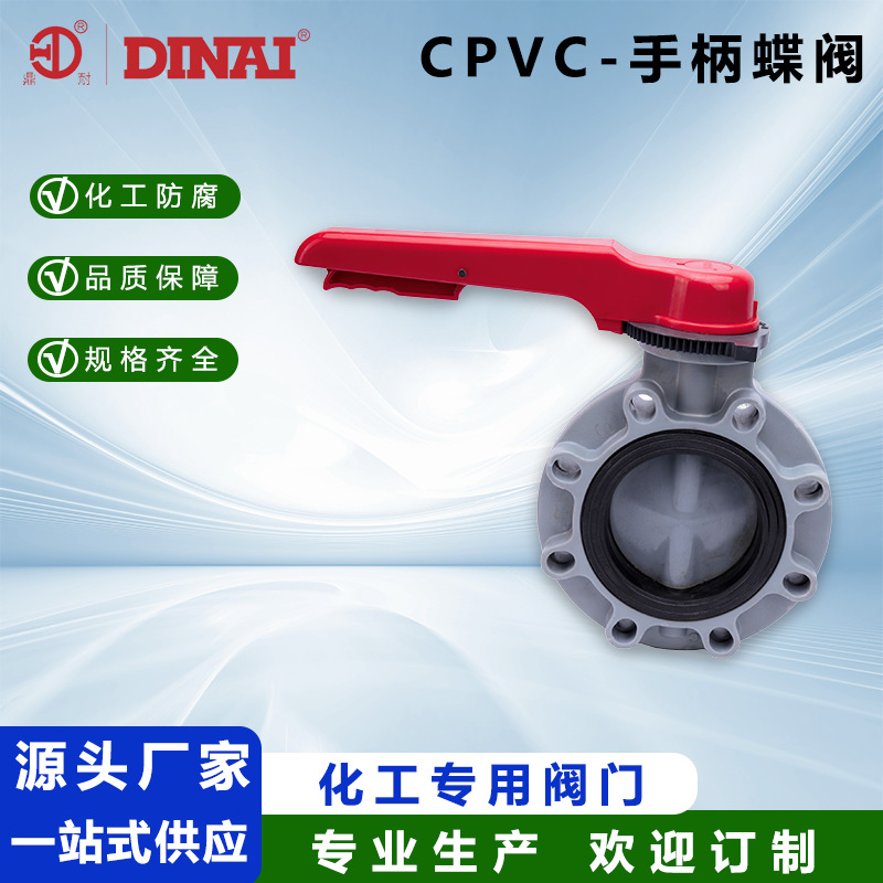 CPVC手柄蝶阀对夹式PVC手动阀化工塑料水管配件耐高温耐腐蚀阀门