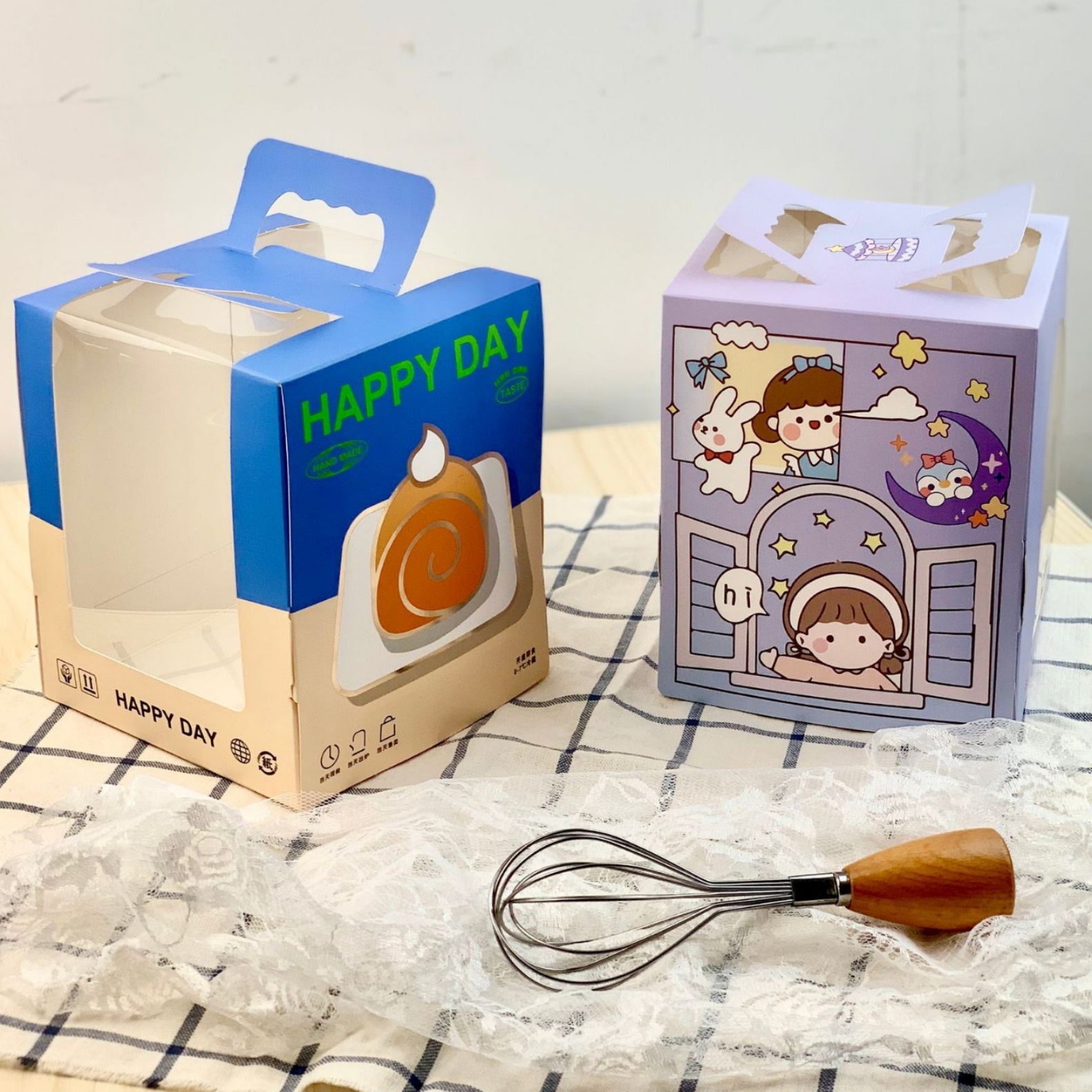 现货小4寸5寸手提透明蛋糕盒慕斯打包盒面包包装袋 烘焙包装