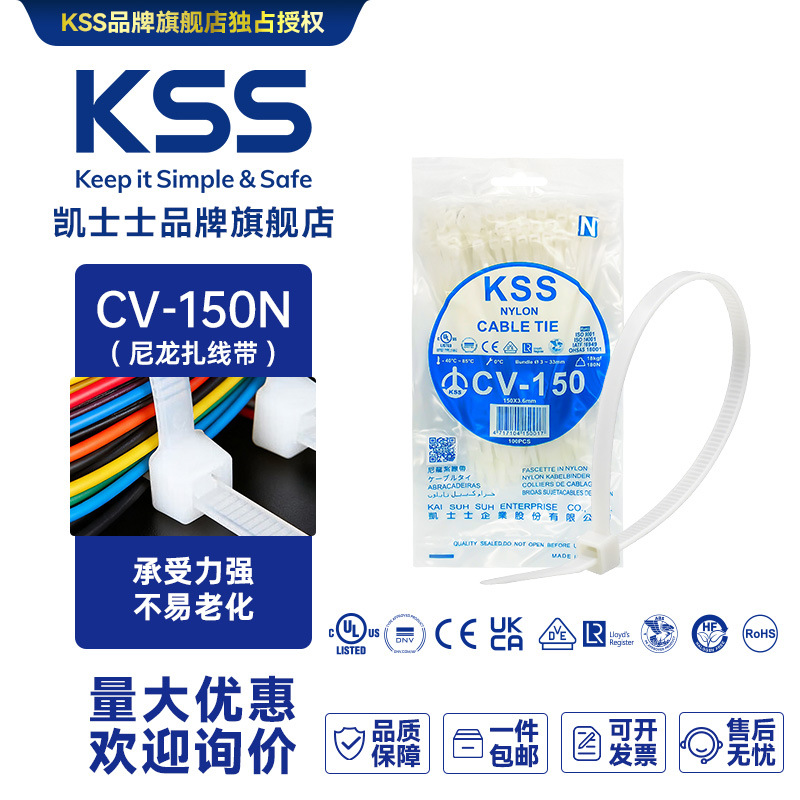 CV-150N台湾凯士士KSS-尼龙扎线带 100根/包线束耐磨尼龙扎带