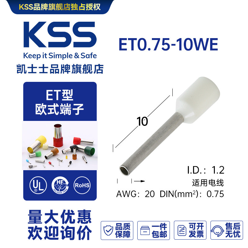 ET0.75-10WE台湾凯士士KSS-欧式端子快速接线端子 100个/包