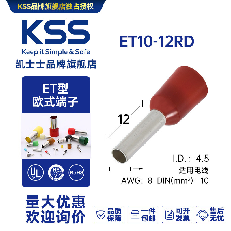 ET10-12RD台湾凯士士KSS-欧式端子100个/包接线铜端子电线电力