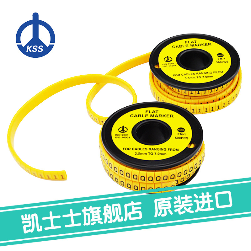 台湾KSS凯士士FM-1黄色扁形配线标志500PCS 数字字符英文字母现货