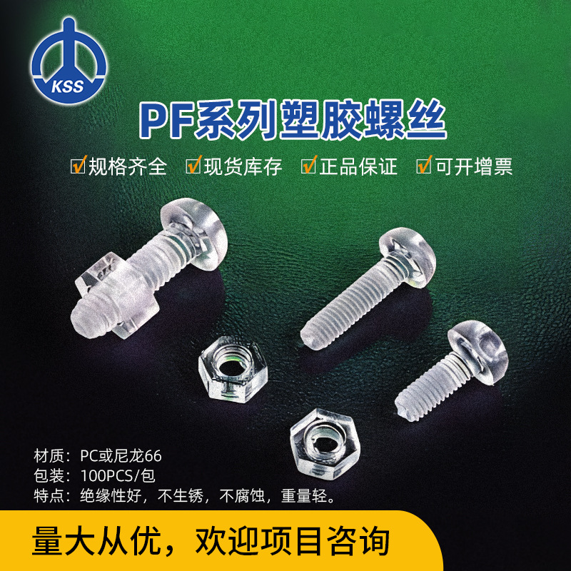 PF系列塑胶螺丝 台湾KSS凯士士 1000PCS/包 圆头十字 尼龙PC材质