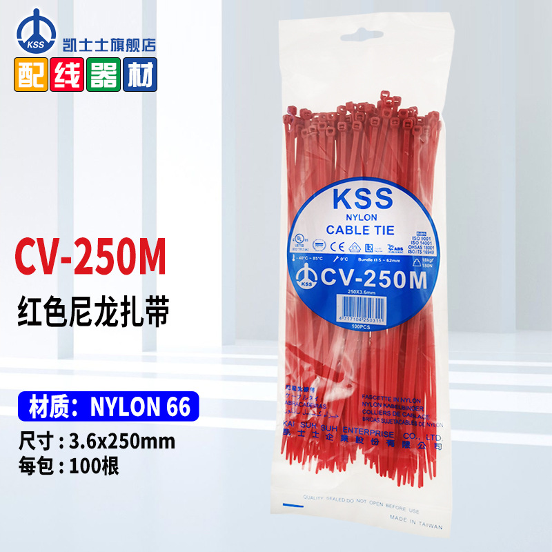 CV-250MRD台湾凯士士KSS红色尼龙扎带100根每包自锁式上海现货
