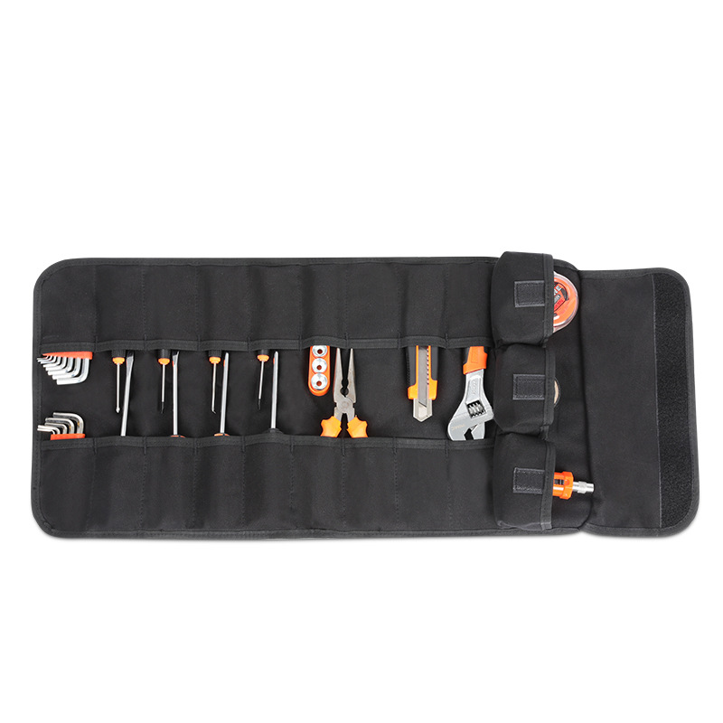定制新款帆布五金工具工具袋多功能黑色源头厂家卷包亚马逊工具包