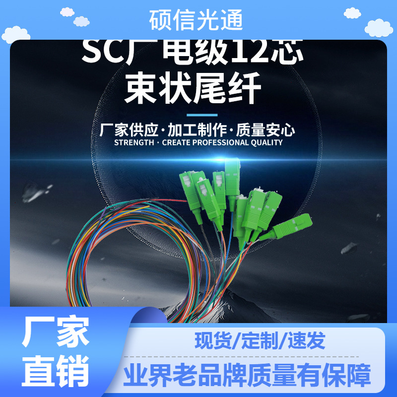 SCAPC12芯0.9束状尾纤1.2米12色SC光纤尾纤斜八度APC广电级
