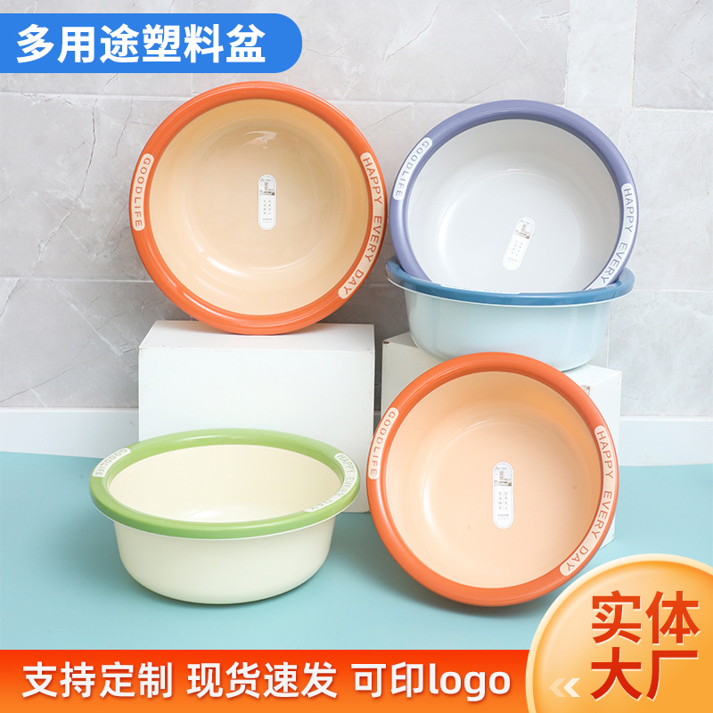 新款双拼色圆形盆加厚耐摔洗衣洗脸盆厨房洗菜盆子学生宿舍塑料盆