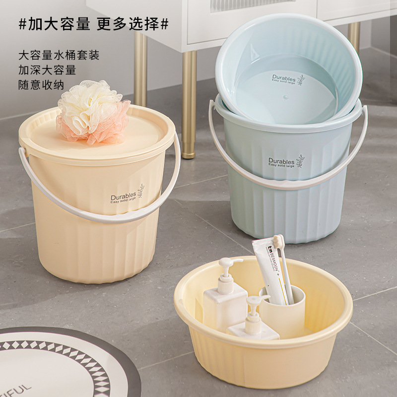可推移塑料桶盆套装家用水桶手提加厚家用学生盆桶卡扣配套好物