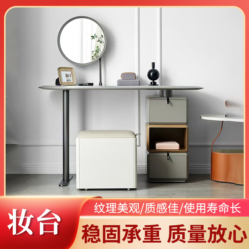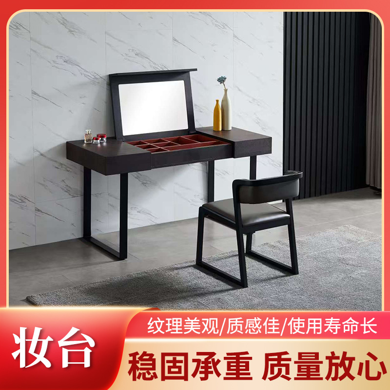 意式轻奢质感化妆台卧室简约收纳柜一体小户型梳妆台实木化妆桌