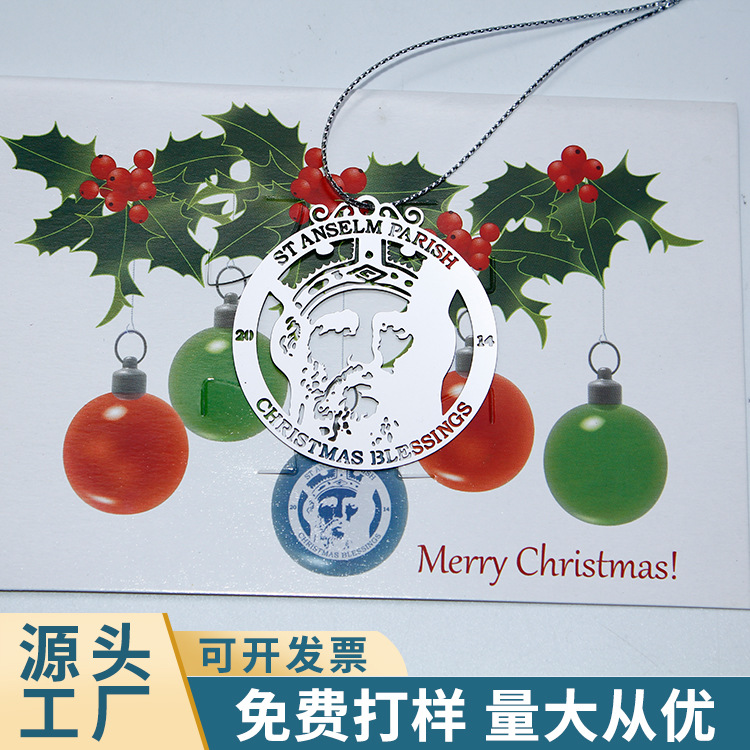 厂家定制圣诞节金属吊饰 镜面不锈钢腐蚀吊坠 圣诞老人咬板镂空