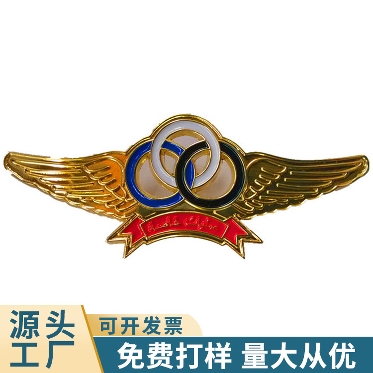 司章金属锌合金压铸电镀臂章 真金翅膀胸针胸章 阿联酋中东徽章
